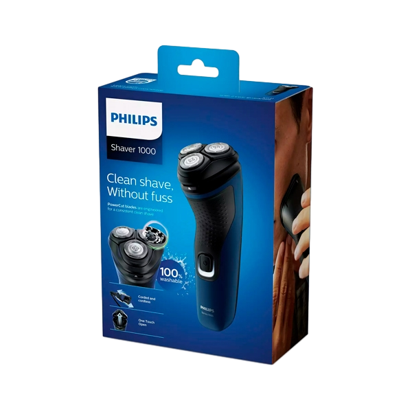 La afeitadora Philips Shaver Series 1000 te proporciona un afeitado fácil y cómodo a un precio accesible con cuchillas PowerCut autoafilables y totalmente lavables.