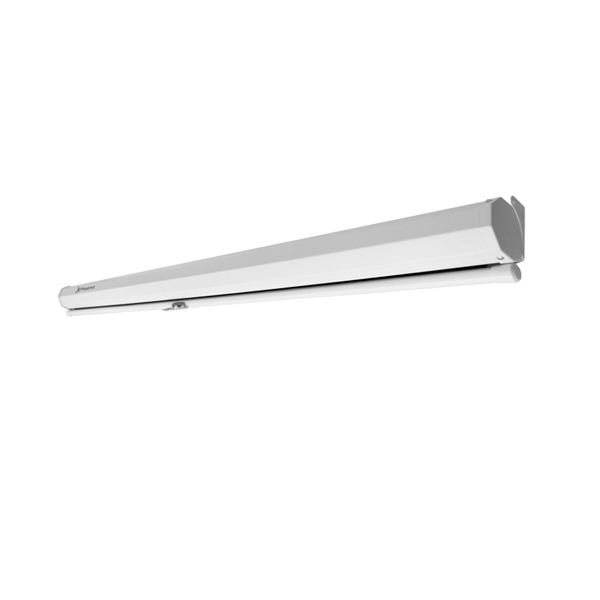 – Pantalla: Tela blanca mate. Lavable. Parte trasera tela negra para evitar reflejos.