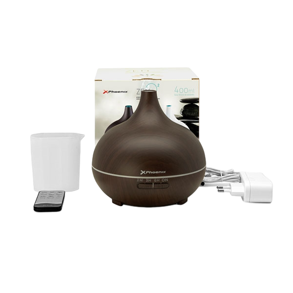 Humidificador Ultrasónico | 400ml | Hasta 6 Horas | Led 7 Colores | control remoto. El nuevo humidificador ZEN 02 de Phoenix es el complemento perfecto para hacer de tu habitación, salón o cualquier parte de tu hogar, una estancia con un ambiente perfecto. Aporta un olor agradable por toda la estancia usando los aceites aromáticos que más te gusten.