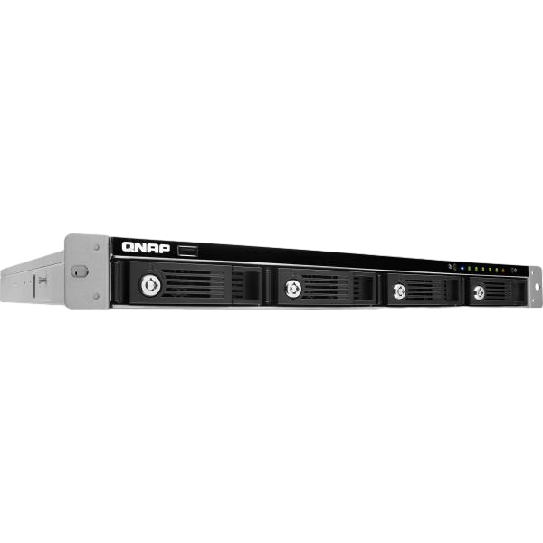 4-Bay TurboNAS, dual-core Celeron 2.41GHz (up to 2.58GHz), 1GB DDR3L RAM (max 8GB), 2x GbE LAN, hot-swappable SATA 6Gb/s, HDMI, QvPC, hardware transcoding, single power, without rail kit