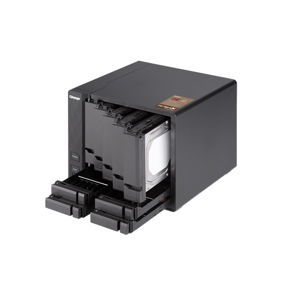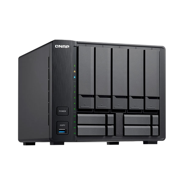 El TS-963X es un NAS asequible para pequeñas y medianas empresas (SMBs) que lleva integrado un procesador de cuatro núcleos y 2,0 GHz GX-420MC de la serie G de AMD, 9 bahías de unidad y un puerto 10GBASE-T de 5 velocidades integrado para una conectividad de hasta 10 Gb. Cuatro bahías de unidad de 2,5" se pueden usar para instalar unidades de estado sólido permitiendo el almacenamiento en caché y la tecnología Qtier. El puerto 10GBASE-T de 5 velocidades integrado (10G/5G/2.5G/1G/100M) también aumenta la productividad de las empresas con cables Cat 5e/6 existentes, sin costes adicionales ni procedimientos de instalación adicionales. En combinación con varias tecnologías de QNAP como VJBOD, Container Station y Virtualization Station, el TS-963X tiene la capacidad de mejorar una amplia variedad de aplicaciones empresariales y también se puede ampliar fácilmente para responder a las futuras necesidades de almacenamiento de datos.