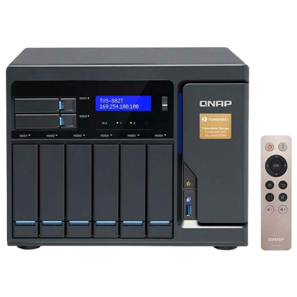 El TVS-882T cuenta con un hardware avanzado mediante la adopcin de procesadores Intel multi-core de 14nm de 6 generacin y ha sido diseado teniendo como base el concepto de almacenamiento por niveles, creacin de particiones basadas en aplicaciones y distribucin del trfico de red. Al proporcionar una solucin de triple Thunderbolt? DAS/NAS/ iSCSI SAN, el TVS-882T ofrece la increble potencia del Thunderbolt? 2, soporta sin problemas la transferencia de visualizacin de vdeo de 4K a 60 fps, y es un complemento perfecto para los usuarios de Mac equipados con Thunderbolt para flujos de trabajo 4K, almacenamiento de archivos e intercambio de alta velocidad. Al ser ms fiable, seguro y contar con mltiples aplicaciones, el TVS-882T ofrece los ms elevados ndices de transferencia, como almacenamiento con un caudal de datos persistente, y proporciona una solucin de almacenamiento completa apta para los negocios.
