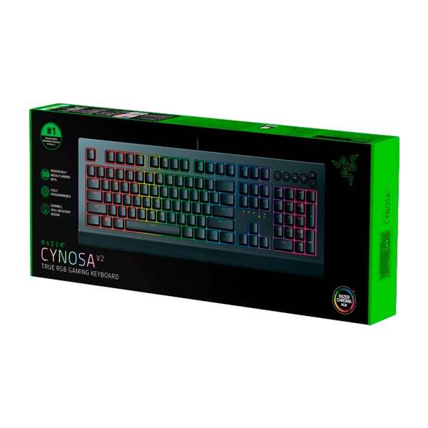 Dale color a tus juegos con una luz verdaderamente envolvente con el Razer Cynosa V2, el teclado para juegos RGB esencial. Con iluminación personalizable en cada tecla, mírala cobrar vida mientras juegas en títulos integrados con Chroma y disfruta de una experiencia de juego de la que nunca querrás alejarte.