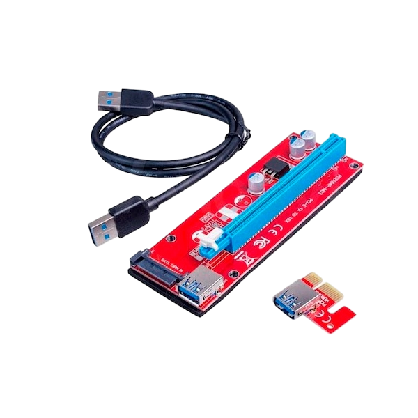 La tarjeta riser PCI Express se puede conectar a cualquier ranura PCI Express x1 de la tarjeta madre. A continuación, la ranura x16 PCI Express se puede montar en una posición diferente en la carcasa. Esto permite que una tarjeta gráfica se opere en cada ranura PCIe de una tarjeta madre, incluso si la tarjeta gráfica es más ancha que una sola ranura. Mediante el uso de varias tarjetas elevadoras, varias tarjetas gráficas se pueden operar simultáneamente en una tarjeta madre. Adaptador PCE-E diseñado para minar criptomonedas Bitcoin, Ethereum, LiteCoin, AltCoin, DogeCoin..etc.