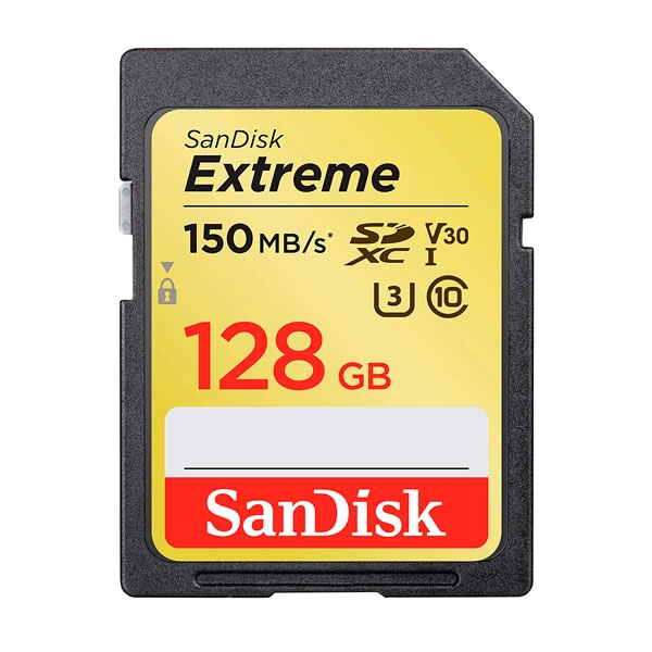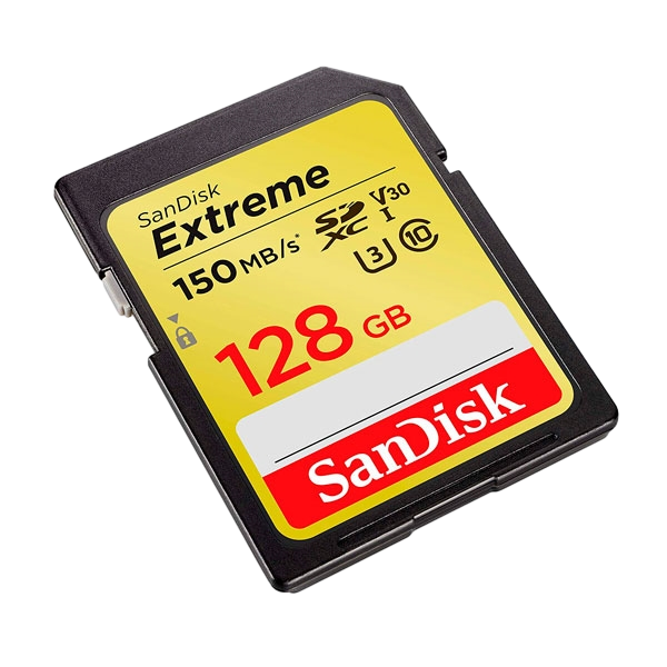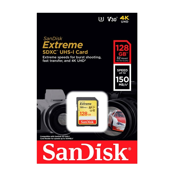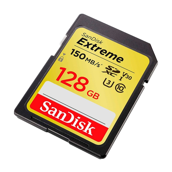 Sandisk Exrteme 128 GB. Capacidad: 128 GB, Tipo de tarjeta flash: SDXC, Clase de memoria flash: Clase 10, Tipo de memoria interna: UHS-I, Velocidad de lectura: 150 MB/s, Velocidad de escritura: 70 MB/s. Color del producto: Negro