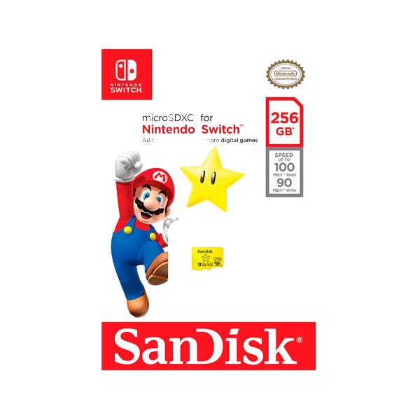La tarjeta microSDXC de SanDisk con licencia oficial para Nintendo Switch proporciona un almacenamiento confiable y de alto rendimiento para tu consola. Agrega 256 GB de capacidad, de modo que puedas guardar tus títulos favoritos en una sola tarjeta.