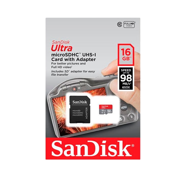 SanDisk Ultra 16GB 98MB/s c/adap – Tarjeta microSD