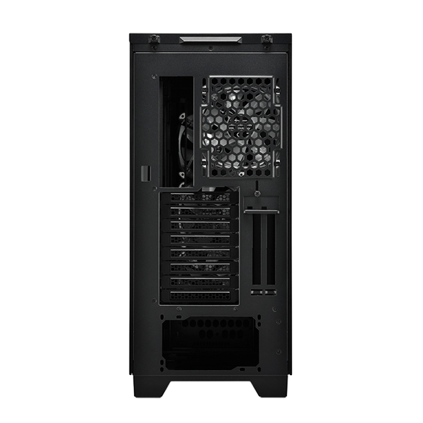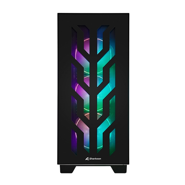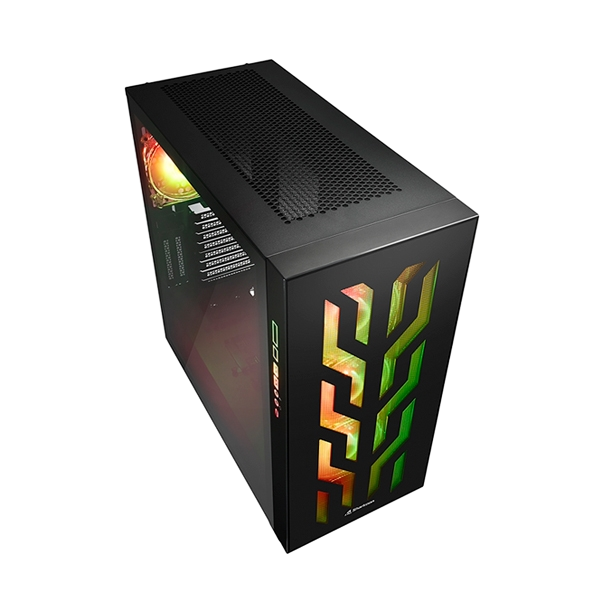 La ELITE SHARK CA300H llama verdaderamente la atención en cada espacio gaming o en cada estudio gracias a su impresionante diseño y a un llamativo panel frontal. Los paneles laterales fabricados en cristal templado permiten un visionado de un interior de la caja cuidadosamente planeado. El panel I/O con iluminación RGB en el lateral de la caja se mezcla con una lograda apariencia de la iluminación LED y, gracias a las aperturas con forma de paralelogramo en el diseño del panel frontal de acero, podemos apreciar todo un despliegue de colores por medio de los ventiladores LED RGB.