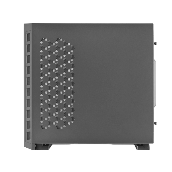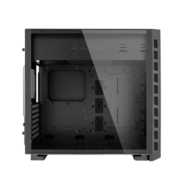 Haz que tu hardware salga de la oscuridad de tu habitación. La NIGHT SHARK, nuestra caja de PC más musculosa hasta el momento, ha sido desarrollada especialmente para set ups gaming de alto rendimiento, hechos para ser expuestos. No solo hemos proporcionado a esta caja Midi ATX un elegante panel frontal y una ventana de exposición fabricada en vidrio templado – en esta ocasión también hemos cambiado nuestro habitual diseño al situar la fuente de alimentación ahora en la parte superior– justo en línea con la parte superior de la aleta de tiburón. De esta manera, debajo, podemos observar por complete el hardware en toda su expresión: desde el radiador, la luz de neón resplandeciente en el panel inferior, a través de los módulos RAM iluminados, hasta el llamativo ventilador de la fuente de alimentación.