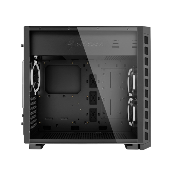 Haz que tu hardware salga de la oscuridad de tu habitación. La NIGHT SHARK, nuestra caja de PC más musculosa hasta el momento, ha sido desarrollada especialmente para set ups gaming de alto rendimiento, hechos para ser expuestos. No solo hemos proporcionado a esta caja Midi ATX un elegante panel frontal y una ventana de exposición fabricada en vidrio templado – en esta ocasión también hemos cambiado nuestro habitual diseño al situar la fuente de alimentación ahora en la parte superior– justo en línea con la parte superior de la aleta de tiburón. De esta manera, debajo, podemos observar por complete el hardware en toda su expresión: desde el radiador, la luz de neón resplandeciente en el panel inferior, a través de los módulos RAM iluminados, hasta el llamativo ventilador de la fuente de alimentación.