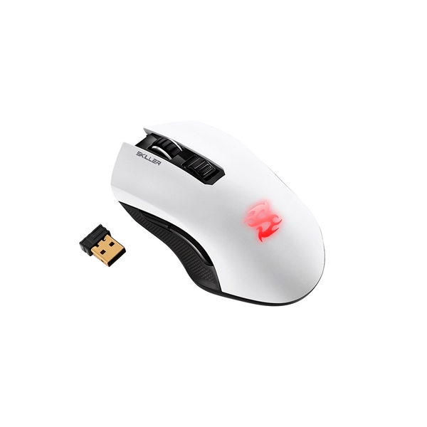 El SKILLER SGM3 es el primer ratón gaming de Sharkoon que permite máxima libertad de movimiento gracias a su conexión inalámbrica. Si, sin embargo, preferimos una conexión convencional, se puede usar un cable USB proporcionado en su lugar. Una batería de ión-litio integrada proporciona un funcionamiento sostenido en modo inalámbrico. Ésta se puede cargar convenientemente mientras jugamos o, alternativamente, de forma inalámbrica. Un sensor óptico con hasta 6.000 DPI y siete botones programables proporcionan ambos precisión y control total. El logo SKILLER RGB, iluminado, no sólo sirve como indicador DPI y de la batería, además aporte un toque visual distintivo.