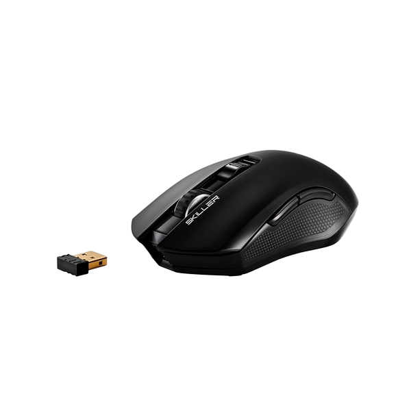 El SKILLER SGM3 es el primer ratón gaming de Sharkoon que permite máxima libertad de movimiento gracias a su conexión inalámbrica. Si, sin embargo, preferimos una conexión convencional, se puede usar un cable USB proporcionado en su lugar. Una batería de ión-litio integrada proporciona un funcionamiento sostenido en modo inalámbrico. Ésta se puede cargar convenientemente mientras jugamos o, alternativamente, de forma inalámbrica. Un sensor óptico con hasta 6.000 DPI y siete botones programables proporcionan ambos precisión y control total. El logo SKILLER RGB, iluminado, no sólo sirve como indicador DPI y de la batería, además aporte un toque visual distintivo.