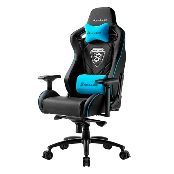 Para aquellos que buscan el máximo confort: la SKILLER SGS4 aporta un diseño de silla más amplio y un respaldo más ancho en comparación a los modelos anteriores de la serie. Además, ha sido fabricada también para soportar un peso máximo de 150 kg y una altura máxima de 2 metros. Sus aspectos destacados son la alta calidad de fabricación y el confort: la SKILLER SGS4 cuenta con un generoso acolchado de espuma en asiento y respaldo, y la cubierta es de cuero sintético y fácil de limpiar. Aparte de su señorial diseño, su apariencia balanceada se debe también a una base de color negro clásica y a la posibilidad de elegir diferentes colores para las líneas de costura y los bordados. Los cojines reposacabezas y lumbar aportan color, pudiendo elegir entre azul, rojo, verde o blanco.