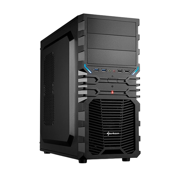 La caja VG4-V destaca por sus características versátiles a un precio económico. La caja ATX está disponible en negro. En el frente podemos ver dos puertos USB 3.0, dos USB 2.0 y dos de audio.