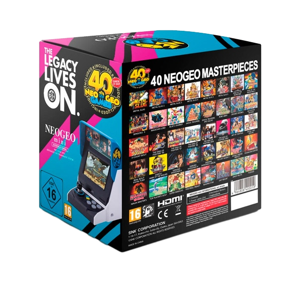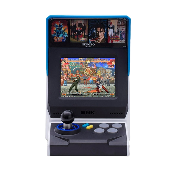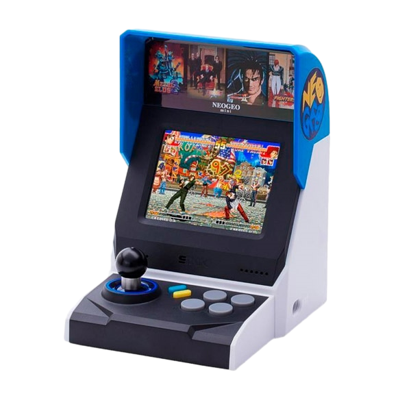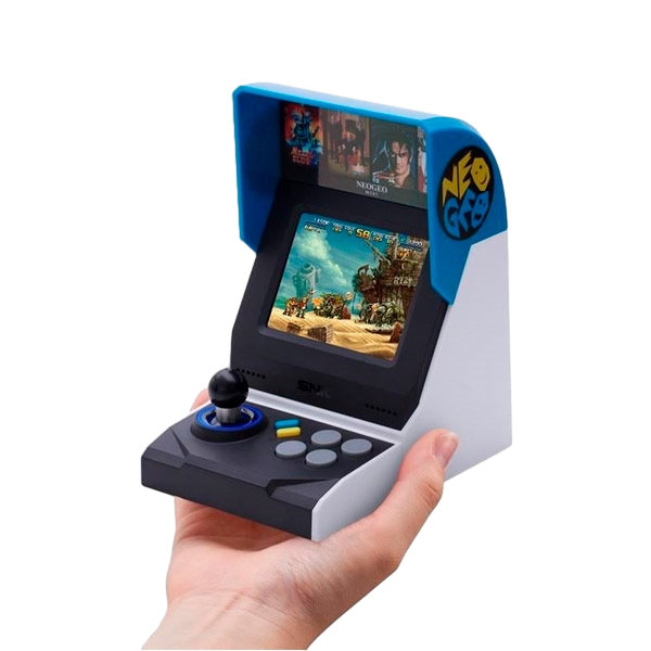 El diseño de la Neo-Geo Mini se basa en el nostálgico gabinete de arcade, y cuante con un controlador tipo joystick, altavoces estéreo, y una pantalla de 3.5", lo que te permite disfrutar de sus míticos juegos sin necesidad de conectarlos a un televisor o monitor (aunque gracias a su puerto HDMI esto es posible si lo prefieres).
