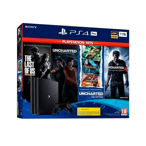 Hazte con esta fantástica oferta que incluye una videoconsola PS4 Pro de 1TB y 6 juegos de Playstation Hits: The Last Of Us, Uncharted 4, Uncharted Collection (1, 2 y 3), y Uncharted el Legado Pedrido. En totan 6 juegazos de Naughty Dog listos para ser disfrutados desde el primer día que te llegue la consola. ¡No te lo pienses mucho, que vuelan!