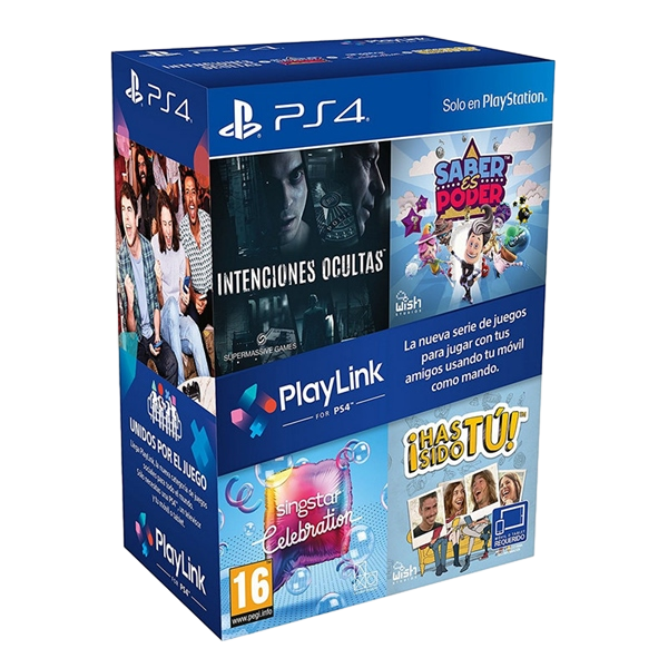 Pack que contiene 4 juegos de Playlink (Has sido tú!, Saber es Poder, Intenciones ocultas y SingStar Celebration). Has sido Tú! El juego en el que el protagonista eres tú. Disfruta de una nueva forma de jugar combinando tu teléfono móvil, televisión y PlayStation 4, gracias la exclusiva tecnología PlayLink