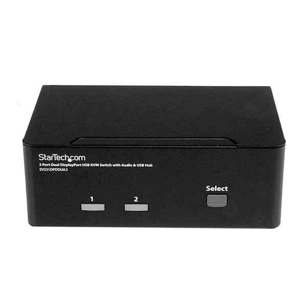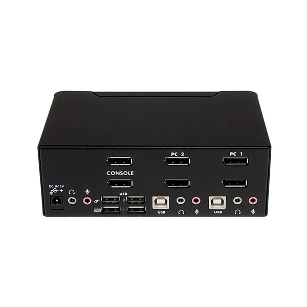Este conmutador KVM DisplayPort dual combina calidad de pantallas digitales de próxima generación con control KVM fluido. Este conmutador KVM de 2 puertos es compatible con audio y periféricos USB, así como doble pantalla, lo cual facilita la creación de una estación de trabajo multimedia que permita la conmutación entre dos sistemas DisplayPort iguales o de doble cabezal