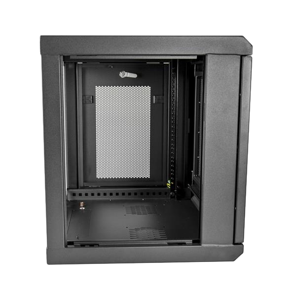 Este armario 9U para racks de servidores le permite instalar sus equipos compatibles con la norma EIA-310 en una pared. La caja tiene una profundidad de montaje de 15,2cm a 43,1cm y capacidad máxima de carga de de 90kg.