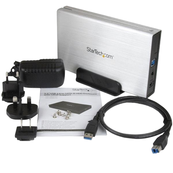 La caja de disco duro USB 3.0, modelo S3510SMU33, permite conectar una unidad SATA de 3,5" a través de un puerto USB disponible. Con soporte para UASP, cuando esta caja se conecta con un controlador host con capacidad de UASP, puede transferir datos un 70% más rápido que con el estándar USB 3.0 convencional. Esto le permite aprovechar todo el potencial de los discos duros SATA III.