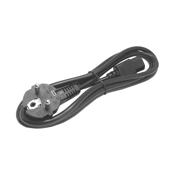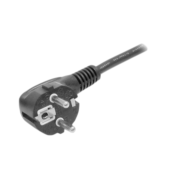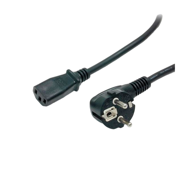 Alimentación de un PC mediante un enchufe eléctrico con conexión a tierra (Europa). 1 conector de alimentación (UE) CEE 7/7 (Schuko). 1 conector IEC 320 C13. Valor nominal para 250 V a 10 A. Conforme con VDE, RoHS