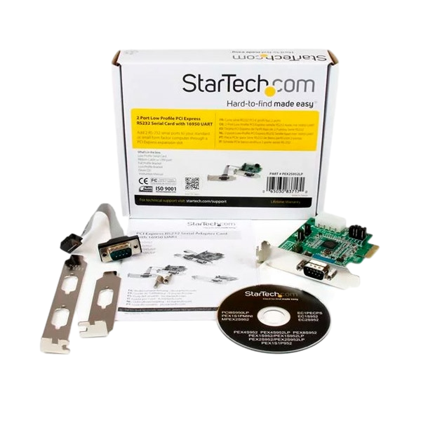 La Tarjeta PCI Express Serie de perfil bajo/altura media, PEX2S952LP permite convertir una ranura PCI Express en dos conexiones serie RS232 (DB9). La tarjeta está basada en un diseño de chip único nativo que permite aprovechar todo el potencial de PCI Express (PCIe), y reducir la carga aplicada al CPU en un 48% en relación con las tarjetas de puerto serie convencionales.