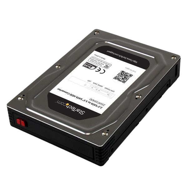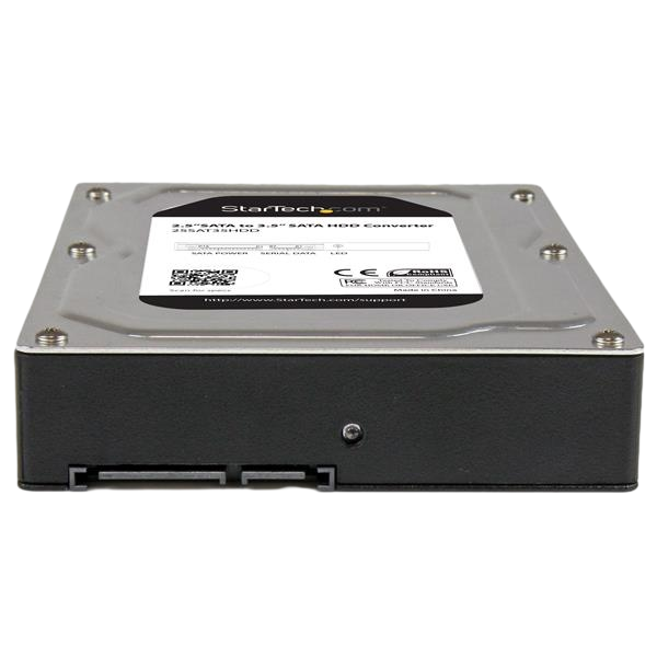 La caja adaptadora de disco duro de 2,5" a 3,5", modelo 25SAT35HDD, convierte un disco duro SATA HDD o SSD (de estado sólido) de 2,5" a unidad de 3,5". La caja adaptadora permite reemplazar una unidad de disco duro SSD/HDD de 3,5" por una de 2,5", en cualquier aplicación que requiera usualmente una unidad de 3,5", como el chasis de un equipo de sobremesa, un backplane o una estación de conexión. La caja tiene las mismas dimensiones que un disco duro estándar de 3,5", incluidos los puntos de montaje y las ubicaciones del conector SATA.
