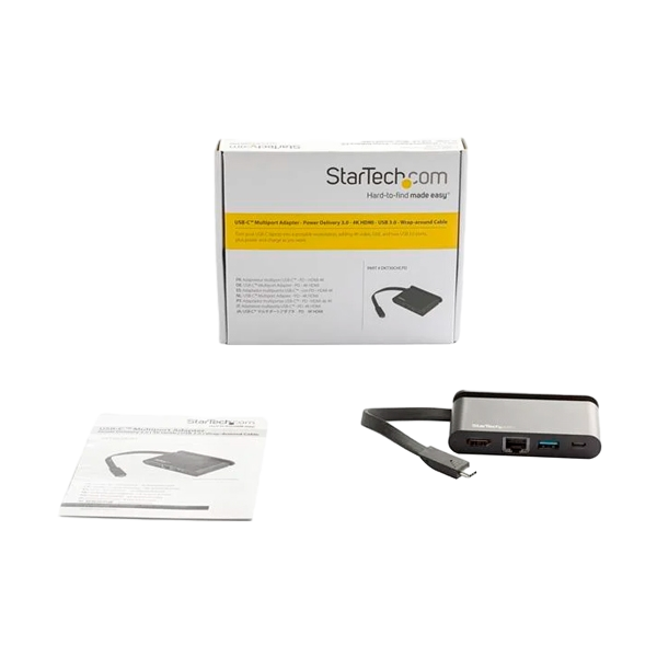 He aquí un adaptador USB-C para su MacBook Pro, Dell XPS u otro ordenador portátil equipado con USB-C™, con todos los puertos que necesita para la máxima productividad. El adaptador multipuerto USB-C con HDMI convierte su ordenador portátil en una estación de trabajo portátil, con salidas de vídeo 4K, puerto Ethernet Gigabit, dos puertos USB 3.0, y carga del ordenador portátil con entrega de potencia 3.0.