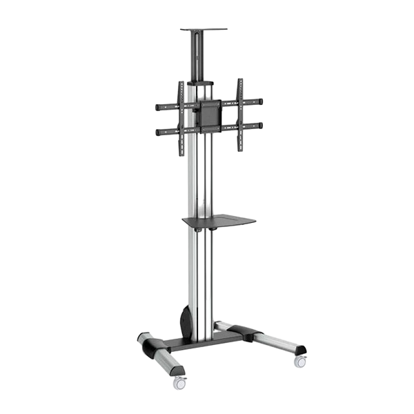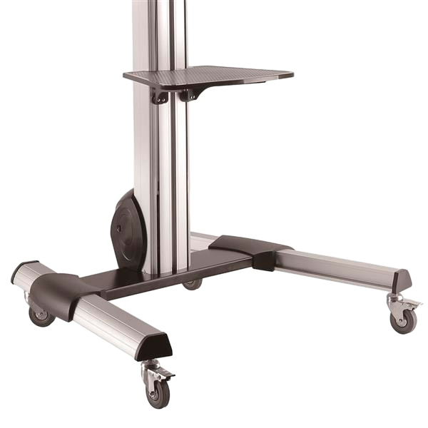 Este carrito portátil para TV facilita la creación de un centro móvil multimedia, lo cual constituye una solución práctica y que resulta económica para compartir equipos audiovisuales entre diferentes habitaciones. Con un diseño elegante y duradero, el carrito para TV ofrece un soporte seguro para un televisor con pantalla entre 32" a 75" (capacidad máxima de peso de 40kg) y bandeja extraíble para multimedia en la que colocar su ordenador, reproductor de medios o teclado. También incluye una bandeja para cámara que se utiliza durante conferencias web.