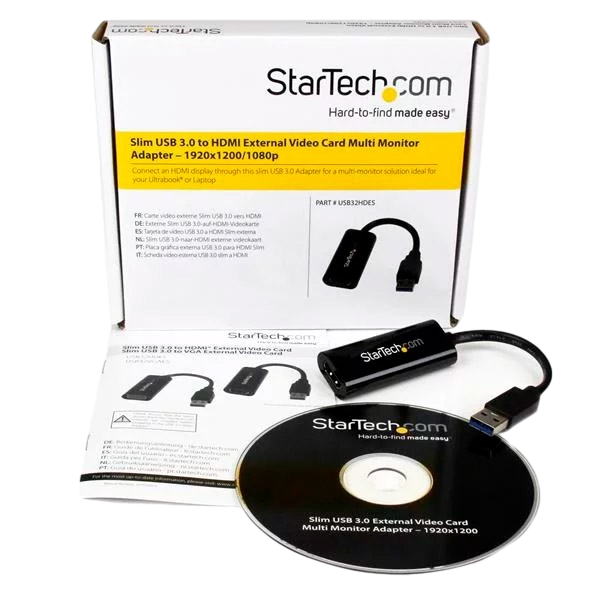 El adaptador compacto USB 3.0 a HDMI, modelo USB32HDES, convierte un puerto USB 3.0 en un puerto de salida HDMI con soporte para vídeo de 1920×1200/1080p. El adaptador minimiza los enredos de cables gracias a su diseño, que se mimetiza sin problemas con su cable de vídeo: es una solución ideal que ahorra espacio en aplicaciones con varios monitores para su uso con ordenadores Ultrabook, portátiles o de sobremesa.