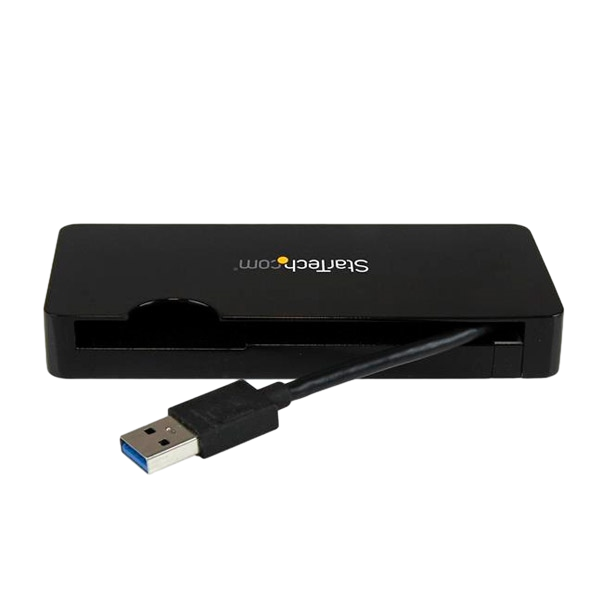 El replicador de puertos de viaje le permite transformar su Ultrabook o su ordenador portátil en una estación de trabajo portátil, al agregarle una salida de vídeo HDMI® o VGA, un puerto de concentrador USB 3.0, así como un puerto Ethernet Gigabit RJ45, todo a través de una conexión USB 3.0 anfitrión. El replicador de puertos apto para viaje le ayuda a resolver las limitaciones de puertos de la mayoría de los ordenadores portátiles modernos, lo cual lo convierte en el accesorio ideal para su ordenador portátil.