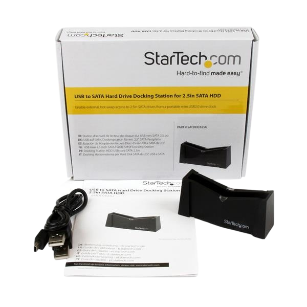 La Estación de Acoplamiento para Disco Duro, SATDOCK25U ofrece acceso instantáneo a cualquier unidad de disco duro o de estado sólido SATA (SATA, SATA II, SATA III) de 2,5 pulgadas – sin necesidad de montar el disco duro en un ordenador.
