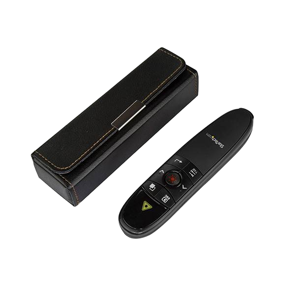 El StarTech Wireless Presenter es un mando esencial para quienes necesitan controlar sus presentaciones de manera eficiente y libre de cables. Con un alcance inalámbrico de hasta 27 metros, permite moverse con total libertad por la sala sin perder el control sobre las diapositivas y otros elementos de la presentación. Su diseño compacto y ergonómico lo hace cómodo de usar durante largas sesiones.