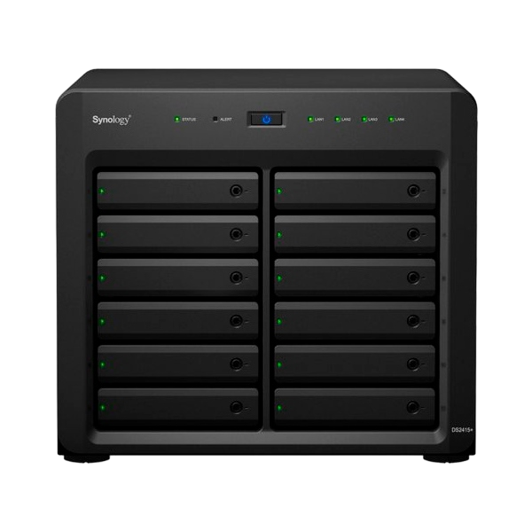 Synology DS2415+ es un potente NAS de escritorio de 12 receptáculos equipado con un procesador Intel® de cuatro núcleos. Al ofrecer compatibilidad con la aceleración AES-NI para un rápido cifrado, DS2415+ está diseñado para gestionar múltiples servicios y ofrecer una gran capacidad de almacenamiento.