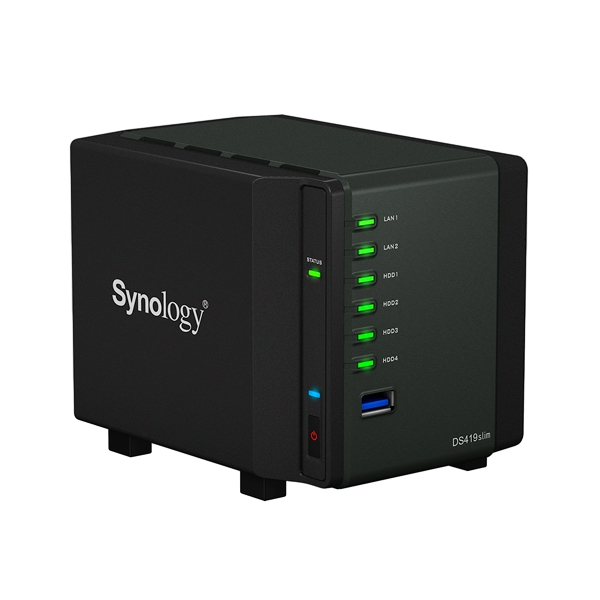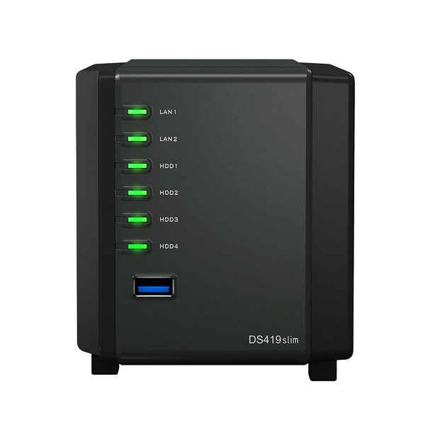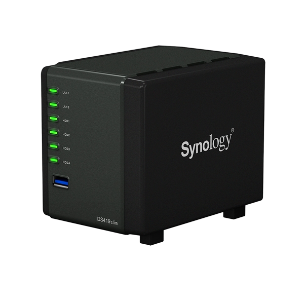 DS419slim es un NAS en forma de cubo con 4 receptáculos que proporciona acceso y uso compartido de archivos en cualquier parte con una transferencia de archivos segura. Ideal para actuar como su socio inteligente y fiable, conserva todas sus fotos, vídeos y archivos bien organizados.