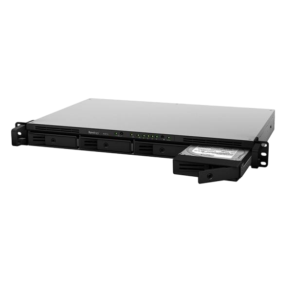 Synology RackStation RS816 es un NAS de montaje en rack de cuatro receptáculos que incorpora una CPU de doble núcleo con motor de cifrado de hardware y dos puertos LAN de 1 GbE, lo que permite ofrecer un excelente rendimiento de la red y avanzadas funciones empresariales.