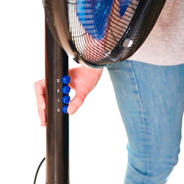 60W. Diseño moderno y minimalista. 40 cm de diámetro. 5 aspas. Sistema de oscilación Push & Pull. Inclinación ajustable. Base redonda para mayor estabilidad. Rejilla extraíble. Fácil de limpiar. Asa de transporte. Silencioso. Caudal de aire: 40,67 m3/min.