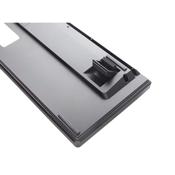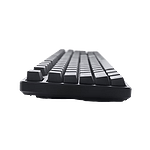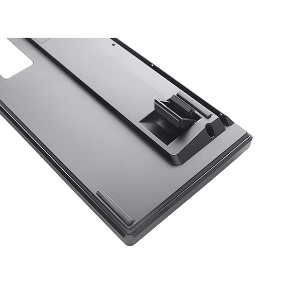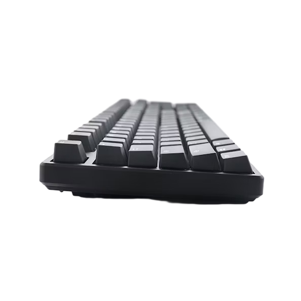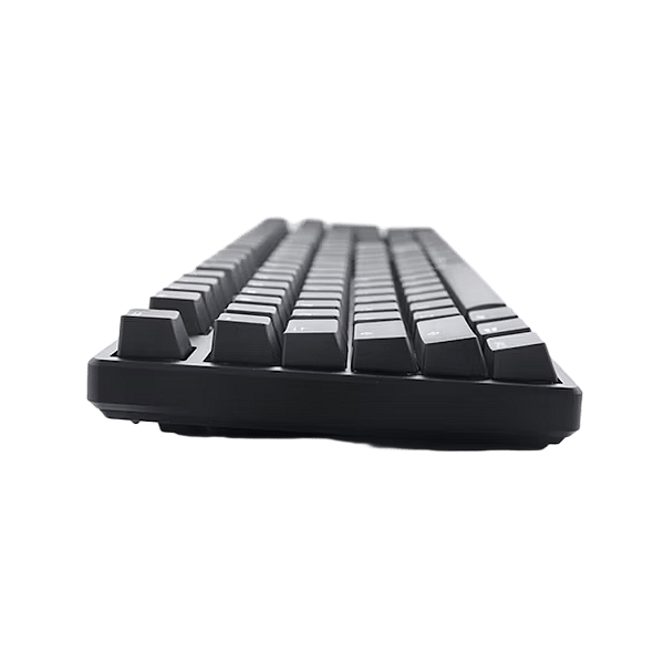 La estructura del teclado se presenta con un diseño limpio y funcional, construido con materiales de alta calidad. Los keycaps de doble inyección en PBT aseguran una gran resistencia al desgaste, evitando que las teclas se borren con el uso continuo. El acabado en color negro mate con inscripciones blancas le da una apariencia sobria y profesional, sin iluminación RGB, ideal para entornos de oficina o para usuarios que prefieren un entorno de trabajo libre de distracciones visuales. Cuenta además con un cable USB-C desmontable y trenzado que facilita el transporte y la conexión, y una estructura sólida montada sobre placa que garantiza durabilidad y estabilidad incluso con un uso intensivo.