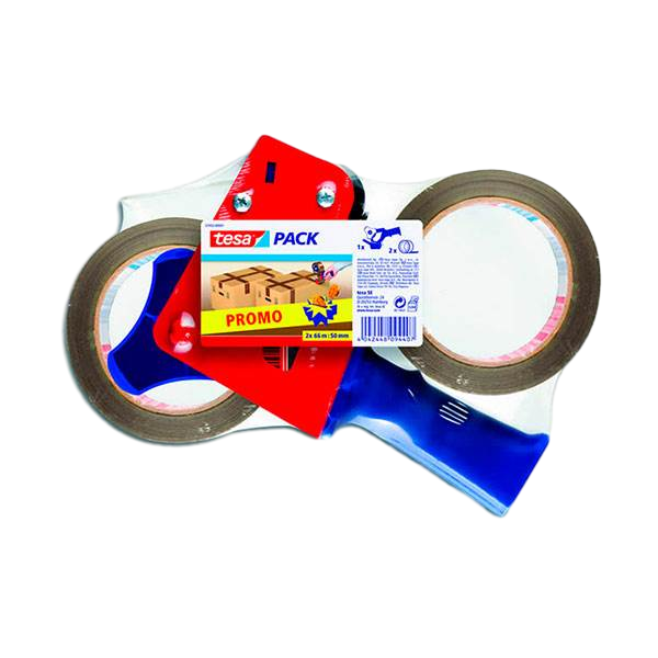 Tesa Precintadora manual + 2 rollos polipropilento de 50 mm x 66 mm color marrón