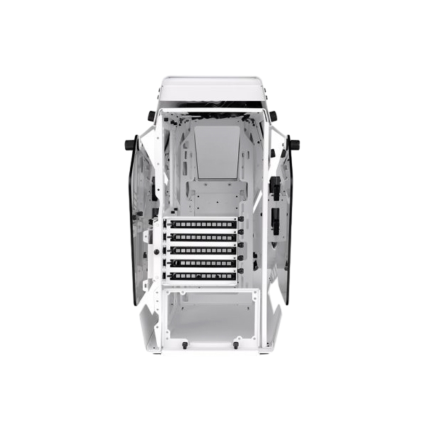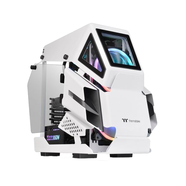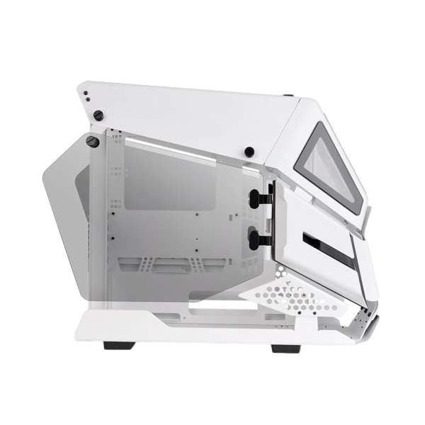 La AH T200 de Thermaltake, es una versión más pequeña de la AH T600, es la primera microcaja de la serie AH que está forjada con una arquitectura robusta, de estilo aéreo, con dos grandes paneles de vidrio templado de 4 mm en los laterales, y tres ventanas de vidrio templado de 3 mm en el frente. Los puertos de E/S están situados en el panel frontal superior con un futurista botón de encendido. No sólo garantiza una excelente ventilación, sino que permite a los usuarios demostrar su trabajo manual y mostrar sus componentes internos. La AH T200 puede albergar hasta dos ventiladores de 140 mm en la parte delantera y en la parte superior, un refrigerador de CPU AIO de 240 mm o 280 mm en la parte delantera. El Micro Chasis AH T200 es único en su clase y todos los usuarios lo notarán, amarán y desearán.