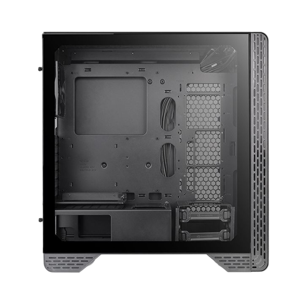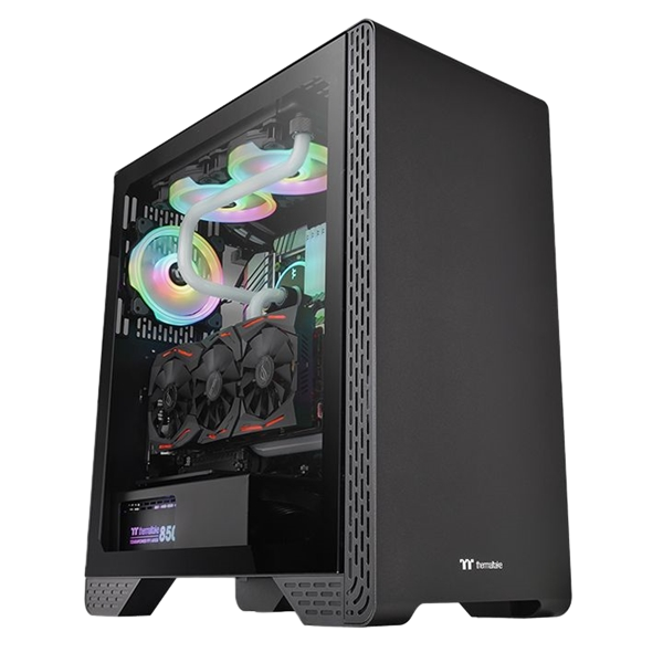 La thermaltake S300 TG mid-tower combina sofisticación y elegancia, y está construido con una moderna construcción de acero. Al igual que la S500 TG, la S300 TG está diseñado para ser compacto y está fabricado con una ventana de vidrio templado a la izquierda para una vista impresionante y un ventilador estándar de 120 mm preinstalado en la parte posterior para una ventilación fundamental. Además, incorpora un diseño modular completo, radiador vertical y montaje de GPU, ranuras PCI-E rotativas patentadas y soporte para ventiladores de 200 mm. La flexibilidad es ilimitada para componentes de alta gama. El chasis S300 TG Mid Tower es ideal para usuarios que buscan un chasis moderno y elegante.