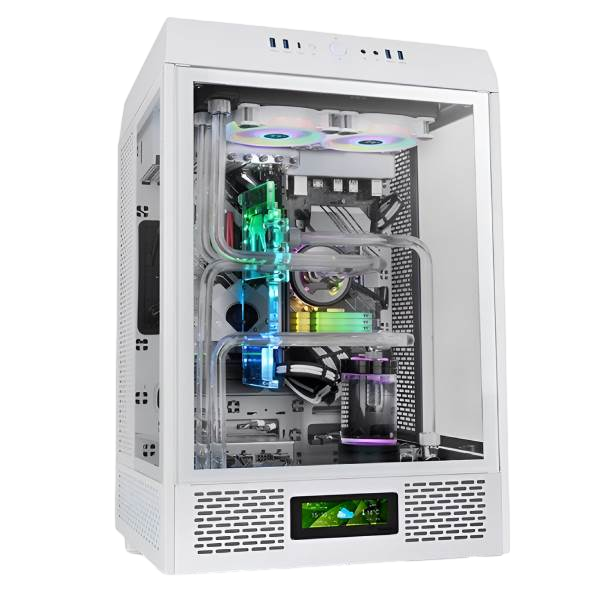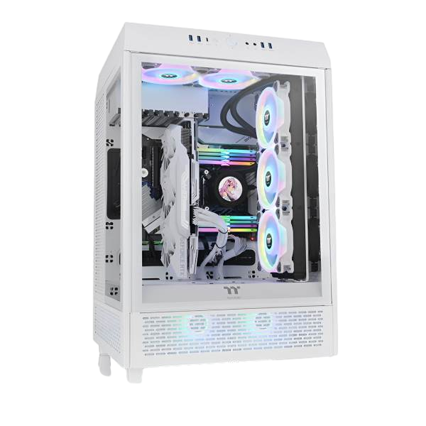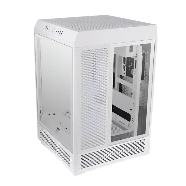 La caja E-ATX Thermaltake The Tower 500 Snow | Blanca cuenta con un diseño vertical con tres paneles de cristal templado de 4 mm proporcionandote una visión completa de todos tus componentes, junto con los ventiladores de 120 mm preinstalados. El chasis admite placas base E-ATX de hasta 12" x 12", Mini ITX, Micro ATX y ATX, lo que te proporciona una amplia flexibilidad para mejorar las opciones de expansion. Cuenta con un acabado blanco hielo que le da un toque más profesional y sofisticado a la caja. Si eres streamer o un entusiasta del gaming, esta caja esta diseñada para ti.