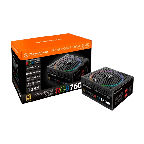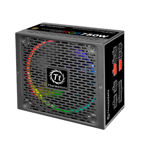 La fuente de alimentación de Thermaltake Toughpower Grand RGB, ofrece una eficiencia 80 PLUS Gold, la serie con una potencia de 750W. El ventilador Riing 14 RGB patentado de 256 colores preinstalado permite 5 modos de iluminación y función de memoria incorporada, y permite más posibilidades de iluminación RGB personalizadas gracias a la sincronización de la luz con las marcas de placas base ASUS, GIGABYTE, MSI, BIOSTAR y ASROCK. Construido con componentes de primera calidad y una amplia garantía de 10 años, el funcionamiento casi silencioso de esta fuente modular, su instalación sin problemas y su rendimiento confiable han logrado satisfacer el mercado donde los usuarios buscan una fuente de alimentación elegante con características avanzadas y atractivo estético.