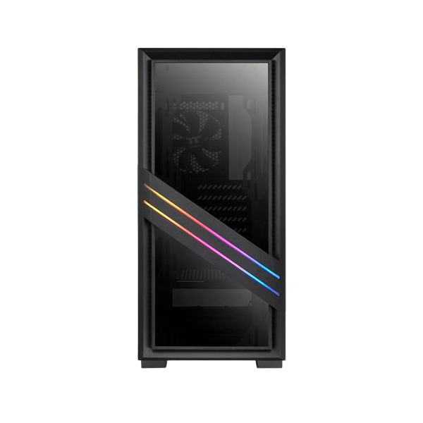 La Thermaltake versa T35 TG RGB es un chasis elegante con gran flujo de aire, construido con dos paneles de vidrio templado en la parte frontal y lateral te permite exhibir tu hardware interior. La barra de luz RGB frontal controlada por el botón RGB en los puertos de E / S resalta aún más el diseño único de la carcasa. Además, la Versa T35 TG RGB puede adaptarse a ventiladores de 200 mm en la parte delantera para una mayor entrada. Admite una amplia gama de hardware de refrigeración por aire y líquido, GPU de gama alta e incluso una práctica cubierta de fuente de alimentación en la base.
