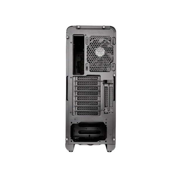 Juega desde una nueva perspectiva con el chasis de juegos de torre central Thermaltake View 27. Diseñado con un panel de ventana transparente de ala de gaviota, disfrute de la vista con el avanzado sistema de montaje de GPU flotante y la vista de claraboya. Agregue opciones para enfriamiento por aire o líquido, que admite radiadores de hasta 360 mm para un rendimiento de enfriamiento optimizado. El panel frontal teñido brinda a los usuarios una apariencia limpia con opciones para que la iluminación del ventilador LED brille a través y los paneles de ventilación laterales para un flujo de aire adecuado. La cubierta de fuente de alimentación de longitud completa incorporada le da un aspecto revestido de vapor con opciones de montaje para refrigeración LCS y opciones de ventilador de caja. Vea la visión del chasis de juegos de próxima generación con Thermaltake View 27.