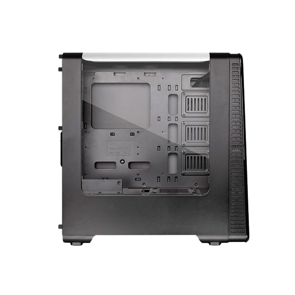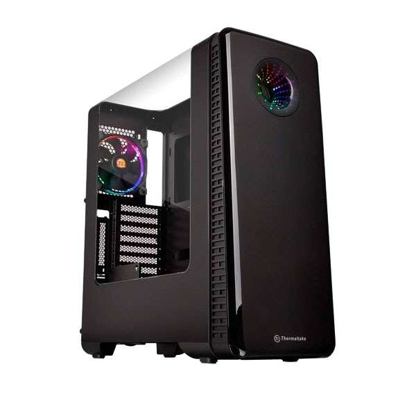 La semitorre View 28 RGB Edición Riing posee una ventana de ala de gaviota transparente, un sistema de montaje de GPU flotante y un cable ascendente PCI-e, además de una cubierta para la PSU que facilita el manejo del cableado. El panel frontal tintado posee una matriz RGB LED de 256 colores que proporciona a los usuarios una presentación limpia al mismo tiempo que da un aspecto visual asombroso al sistema. El View 28 RGB es compatible con el hardware de gama alta, ya sean tarjetas gráficas, o sistemas de refrigeración líquida o por aire. Configura tu PC definitivo con el Thermaltake View 28 RGB Edición Riing.