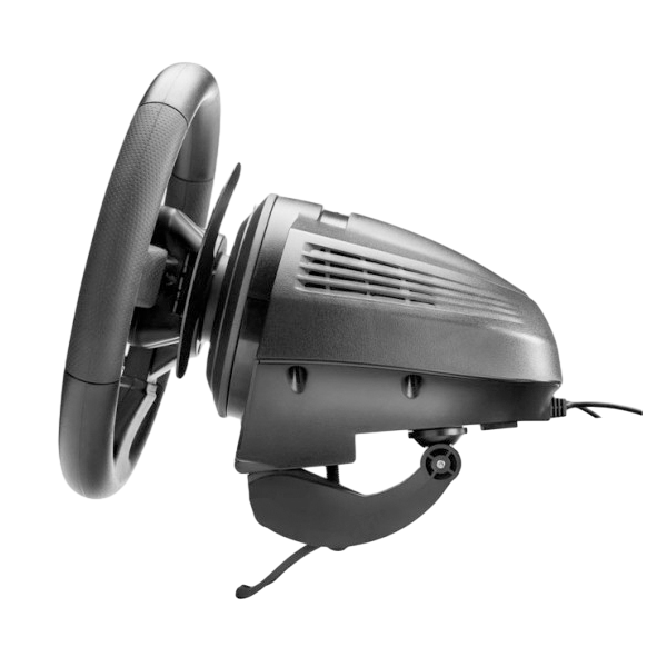 Sistema de accionamiento con force feedback ajustable que te permite sentir cada detalle mientras estás corriendo (el relieve de la carretera o el circuito, la pérdida de agarre del neumático, el frenado, los baches e impactos, etc.).¡Ángulo de giro ajustable desde 270° hasta 900°! Volante muy preciso: lectura óptica con resolución de 12 bits (es decir, 4.096 valores en el eje de dirección del volante) – Sistema mixto de engranajes y correa-polea (más suave y fluido y menos ruidoso que los engranajes helicoidales)con eje metálico con rodamientos (para una mayor solidez) – Memoria interna y firmware actualizable – Sistema de fijación robusto y versátil, compatible con todos los soportes (escritorios, mesas, etc.) – Compatible con los pedales T3PA y T3PA-PRO (Thrustmaster 3 Pedals Add-on) – Compatible con el cambio de marchas Thrustmaster TH8A.