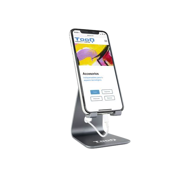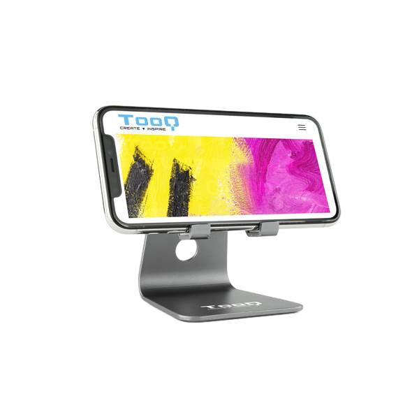 Tooq PH0001-G Stand Gris – Soporte Smartphone. Soporte de sobremesa ajustable para teléfono / Tablet. Fabricado en metal de alta resistencia, siempre con la calidad de los productos TooQ.