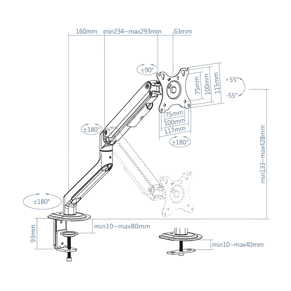 Soporte de mesa para pantallas de 17 a 32" con brazo articulable mediante mecanismo asistido por muelles lo que te permitirá adaptar la altura del monitor sin esfuerzo.
