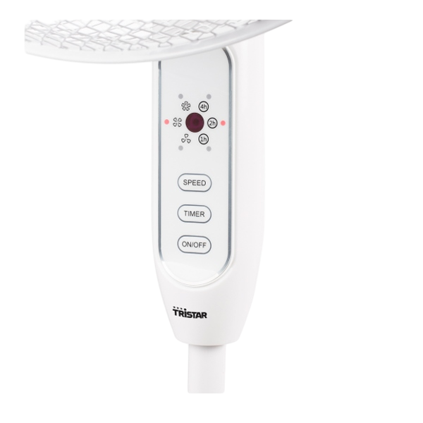 No se olvide de apagar el ventilador con la práctica función de temporizador en el ventilador de pie Tristar. El temporizador se puede ajustar entre 1 y 7 horas, de forma que encienda el ventilador, ajuste el temporizador y disfrute de la fresca brisa.